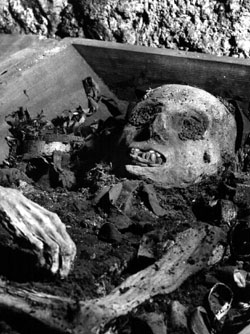 Také jeptiška z kobky "3" byla v době našich návštěv v období 1968 - 1971 ještě slušně zachovalou mumií. I v současnosti je jednou z nejlépe dochovalých mumií a věříme, že po dokončení rekonstrukce katakomb a po jejich zpřístupnění veřejnosti mnozí z vás ji naleznou na svém místě ve třetí kobce vpravo v druhé rakvi, jako to bylo za našich návštěv v tomto tajemném, pochmurném a hrůzokrásném podzemním světě těch, kteří několik staletí již nechodí po této zemi.