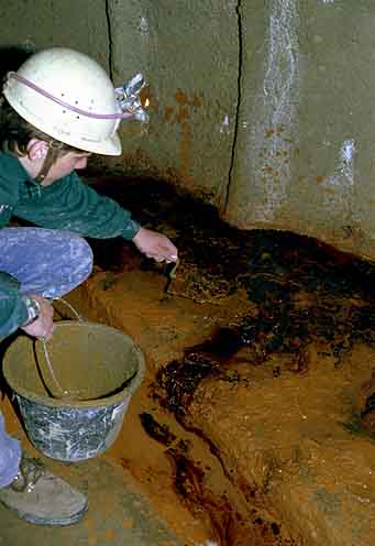 Ve štolách se rychle vytváří železitý gel, který se mění z