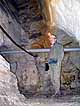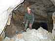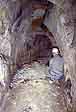 Vrátili jsme se zpět a postupujeme hlavní chodbou do největší podzemní prostory. Jsme v místech, kde dochází k čerstvému řícení. Částečný zával je ve vstupu do největší prostory. |
