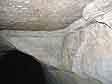 V tomto místě je patrno dodatečné upravení profilu chodby při použití na kryt. Uložení vrstev je zde prakticky vodorovné a podbořanské arkózové zkaolinizované pískovce se snadno drolí. Strop opadává a klenba se přirozeně zaklenuje. |