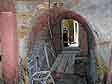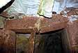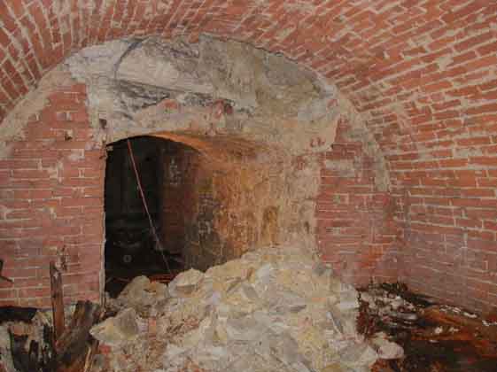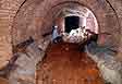 Tato chodba, celá obezděná kamenným zdivem, místy s cihlami, klenbou z cihel i křemitého růžového pískovce, vede k závalu, přes který jsme pronikli do II. objektu. V obou stěnách má několik výklenků. Před závalem odbočuje vlevo další chodba. |