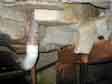Potrubí kanalizační přípojky je položeno na “rozepřený” lešenářských trubkách (báli jsme se o ně zavadit, aby se na nás tento dubiosní hovnovod nezřítil) a k trubkám je potrubí přivázáno provázkem, který již trouchniví. |