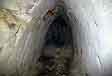 A zde, asi 2 m před čelbou vlevo je do stropu dovrchní vrt z doby, kdy tato prostora měla za války sloužit jako protiletecký kryt. Vrt vedl až na povrch a sloužil k vě trání podzemního objektu. |