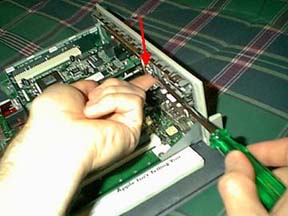 With the card in place you can put the screw back in that we removed to get the PCI cover off. Now this screw secures the PCI card in place.