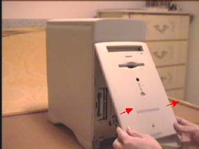 The following is from Larry who has found a better way to remove the covers without a need for the flathead screw driver. I tried it and it works! Thanks Larry I hope to have a picture soon. ["I had occasion to take apart my 6400 and I noticed that in the method described on your website, the side clips for the front cover are not released before force is applied. I took a good look at the cover and noted that if you push in on the center, the side edges spread apart due to the curvature of the cover. In practice this means you release the bottom latches, then push in on the center of the cover while pulling out on the edges - something like shuffling a desk of cards - the cover practically falls off. The same method helps even more with the front small cover."]
