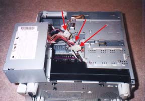 Now unplug the 3 cables. 2 look like HD power supply cables with one being extra large with more wires and the 3rd has a ribbon cable.