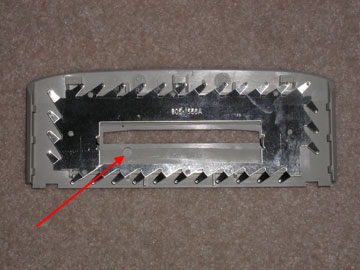 Below is a picture of the upper bezel's back side. Note the circle the red arrow is pointing to. That is the location you need to drill.